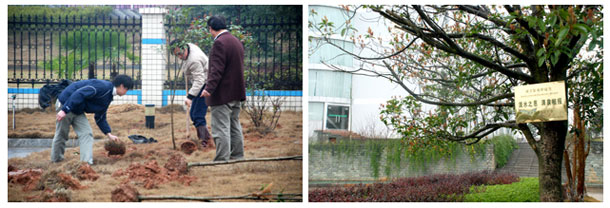 在大家的齊心合力下,又一片綠色的小樹(shù)林成長(zhǎng)起來(lái)。在返回公司總部辦公樓的途中,我們還看到,為紀(jì)念綠之韻集團(tuán)成立三周年時(shí)種下的掛有“飲水思源”牌匾的樹(shù)在春雨的澆灌下顯得更加欣欣向榮。