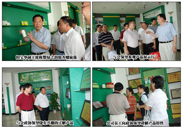 二〇〇八年七月十六日,湖南省政協(xié)經(jīng)科委主任擴(kuò)大會(huì)議在綠之韻集團(tuán)現(xiàn)代化辦公大樓五樓會(huì)議室召開。作為湖南省第十屆政協(xié)委員的胡國(guó)安董事長(zhǎng)十分重視此次向政協(xié)領(lǐng)導(dǎo)們展示綠之韻集團(tuán)面貌的機(jī)會(huì),公司上下都要求以最高規(guī)格進(jìn)行接待。前來(lái)參加會(huì)議的有:湖南省政協(xié)副主席陽(yáng)寶華,湖南省政協(xié)副主席、民建省委主委龍國(guó)健,湖南省政協(xié)常委、副秘書長(zhǎng)向邦柱,經(jīng)科委副主任、湖南省商務(wù)廳廳長(zhǎng)向力力,湖南省政協(xié)常委、經(jīng)科委副主任、省國(guó)稅局局長(zhǎng)程安亭等二十多位湖南省政協(xié)領(lǐng)導(dǎo)。會(huì)議議程首先由湖南省政協(xié)委員、綠之韻集團(tuán)董事長(zhǎng)兼總裁胡國(guó)安向大家介紹了綠之韻集團(tuán)的規(guī)模和發(fā)展現(xiàn)狀。參加此次會(huì)議的政協(xié)領(lǐng)導(dǎo)中,大部分人已經(jīng)不是第一次來(lái)訪考察綠之韻,此次政協(xié)會(huì)議選址在綠之韻集團(tuán)內(nèi)部召開,也表達(dá)了湖南省政協(xié)領(lǐng)導(dǎo)們對(duì)綠之韻集團(tuán)的支持與厚愛。隨后,由湖南省政協(xié)常委、經(jīng)科委主任吳金明向大家通報(bào)了湖南省政協(xié)重點(diǎn)調(diào)研課題《以“兩型社會(huì)”建設(shè)為契機(jī),推進(jìn)湖南特色新型城市進(jìn)程》的有關(guān)情況;最后,大家對(duì)當(dāng)前經(jīng)濟(jì)熱點(diǎn)問(wèn)題——“雙防”(防止經(jīng)濟(jì)增長(zhǎng)由偏快轉(zhuǎn)為過(guò)熱、防止價(jià)格由結(jié)構(gòu)性上漲演變?yōu)槊黠@通貨膨脹)展開了熱烈的談?dòng)憽?br /> 會(huì)議圓滿結(jié)束后,胡國(guó)安董事長(zhǎng)陪同與會(huì)的政協(xié)領(lǐng)導(dǎo)參觀了綠之韻標(biāo)準(zhǔn)形像店的展示廳,大家對(duì)品種繁多的綠之韻產(chǎn)品和琳瑯滿目的各項(xiàng)榮譽(yù)獎(jiǎng)牌嘖嘖稱嘆,特別是陽(yáng)寶華副主席向大家大力推薦起他所熟知并一直在服用的綠之韻銀杏螺旋藻片,連聲稱贊這是保健的好產(chǎn)品。同時(shí),各位政協(xié)領(lǐng)導(dǎo)也對(duì)綠之韻集團(tuán)全力配合省政協(xié)開好這次會(huì)議所做的工作給予了高度肯定和贊揚(yáng),對(duì)胡國(guó)安董事長(zhǎng)領(lǐng)導(dǎo)下的綠之韻公司未來(lái)的發(fā)展表示關(guān)注和支持。