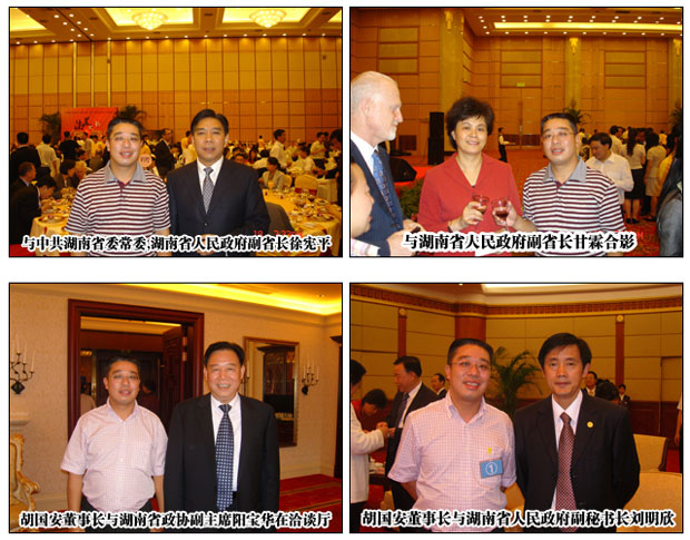 在隨后舉行的省情推介會(huì)暨重大合作項(xiàng)目簽約儀式上,胡國安董事長與中外嘉賓及客商一同觀賞了專題宣傳片《湖南,讓夢(mèng)想更精彩》。大會(huì)由副省長甘霖主持,商務(wù)部外資司副司長黃愛菊在大會(huì)上致辭。上海市委副書記、上海人民政府市長韓正,原外經(jīng)貿(mào)部部長、中國外商投資企業(yè)協(xié)會(huì)會(huì)長石廣生,上海市委常委、副市長屠光紹出席推介會(huì)。湖南省省長周強(qiáng)向2000多位境內(nèi)外客商熱情洋溢地推介湖南,希望加強(qiáng)與長三角經(jīng)濟(jì)圈經(jīng)貿(mào)合作,并熱情邀請(qǐng)境內(nèi)外客商投資湖南。