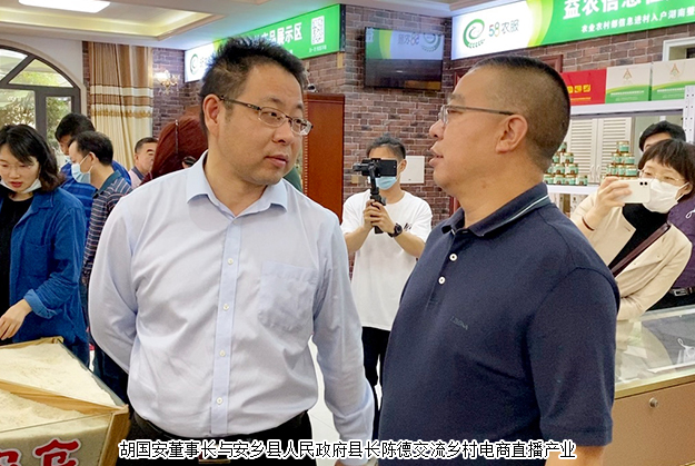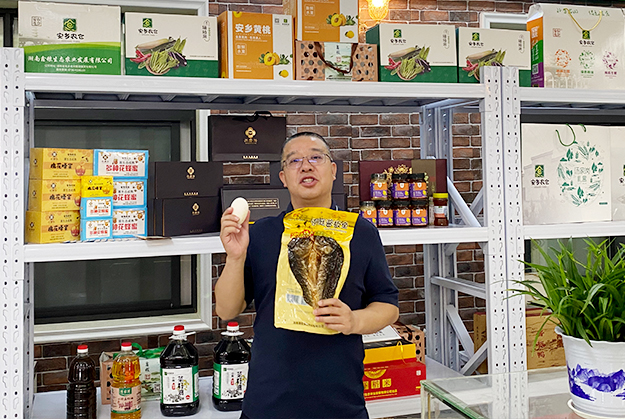 開班儀式后,胡國安董事長陪同調(diào)研組一行前往安鄉(xiāng)農(nóng)倉,考察安鄉(xiāng)農(nóng)產(chǎn)品和電商直播情況。據(jù)了解,“安鄉(xiāng)農(nóng)倉”是隸屬于安鄉(xiāng)縣的區(qū)域公用品牌,由以珊珀湖魚為代表的鮮活類系列產(chǎn)品、以黃山頭鴨為代表的鹵臘休閑類系列產(chǎn)品、以湯家崗米為代表的糧油類系列產(chǎn)品組成,這也標志著作為農(nóng)業(yè)大縣的安鄉(xiāng)正在轉(zhuǎn)型發(fā)展、正在實行品牌發(fā)展、正在高質(zhì)量發(fā)展,正在實現(xiàn)“農(nóng)業(yè)大縣向農(nóng)業(yè)強縣”的華麗蝶變。