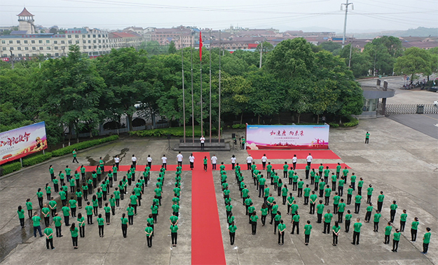 一曲激昂澎湃的《綠韻飛揚(yáng)》拉開(kāi)了動(dòng)員大會(huì)序幕。在集團(tuán)公司前坪,全體綠之韻人統(tǒng)一著裝、整齊列隊(duì)迎接升旗儀式暨動(dòng)員大會(huì)。伴隨著莊嚴(yán)雄壯的國(guó)歌聲,鮮艷的五星紅旗冉冉升起,綠之韻家人向國(guó)旗行注目禮,內(nèi)心激蕩著對(duì)偉大祖國(guó)的熱愛(ài)和崇敬。