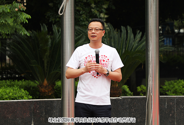 綠之韻國(guó)際商學(xué)院執(zhí)行院長(zhǎng)黎芋成作動(dòng)員講話。他在講話中表示,此次沖刺動(dòng)員大會(huì)是綠之韻人在新冠肺炎疫情取得階段性勝利后迎來(lái)的首次大團(tuán)聚。大家要有強(qiáng)烈的珍惜感、責(zé)任心和目標(biāo),用飽滿的精神狀態(tài),為夢(mèng)想和目標(biāo)努力奮斗。
