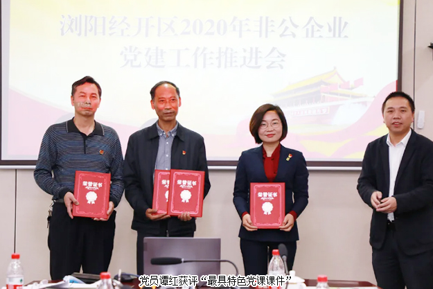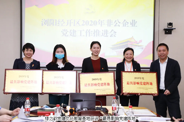 2019年,瀏陽(yáng)經(jīng)開(kāi)區(qū)非公企業(yè)黨組織認(rèn)真貫徹落實(shí)瀏經(jīng)企發(fā){2019}2號(hào)文件精神,扎實(shí)開(kāi)展黨建陣地的升級(jí)、黨課課件的提標(biāo)、主題黨日活動(dòng)的創(chuàng)新等工作。會(huì)上,瀏陽(yáng)經(jīng)開(kāi)區(qū)黨工委委員、管委會(huì)副主任、企業(yè)黨委書(shū)記何六生為在2019年“非公黨建三最”評(píng)選活動(dòng)中獲獎(jiǎng)的企業(yè)與個(gè)人頒發(fā)了獎(jiǎng)牌與證書(shū)。綠之韻集團(tuán)黨委黨建活動(dòng)室獲評(píng)“最具影響黨建陣地”;黨員譚紅制作的《心中有陽(yáng)光,腳下有力量》黨課課件榮獲“最具特色黨課課件”。
