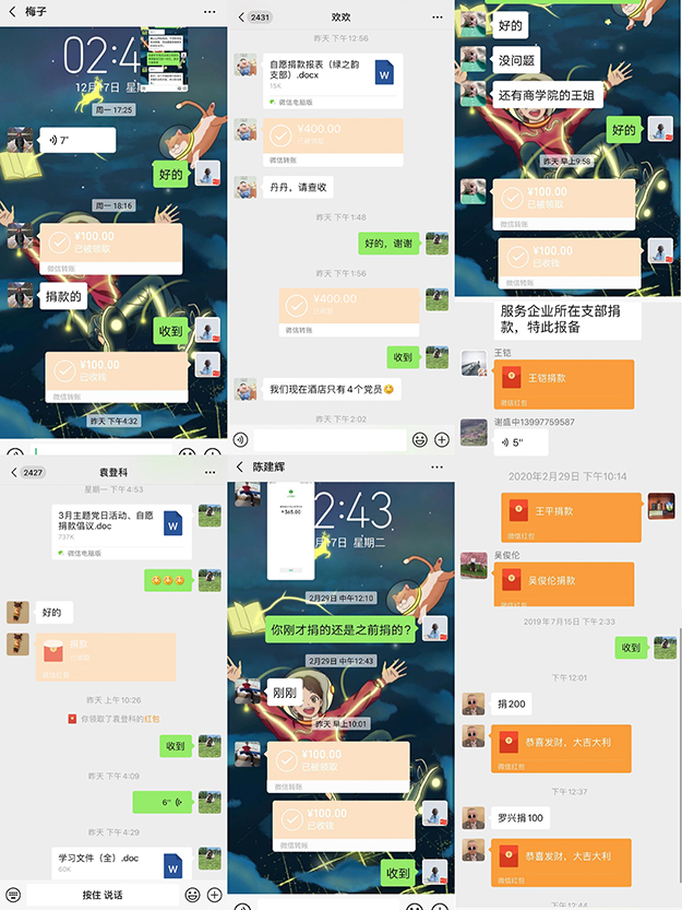 為打贏疫情防控阻擊戰(zhàn),積極響應(yīng)黨中央對廣大黨員的號召,3月4日,綠之韻集團黨委組織廣大黨員同志,自愿捐款支持新冠肺炎疫情防控工作。此次捐款尊重黨員意愿,堅持自覺自愿、量力而行,不提硬性要求,不搞強迫命令,普通黨員捐款一般不超過100元,倡導(dǎo)黨員同志根據(jù)實際情況表達愛心。廣大黨員同志接到捐款倡議后,踴躍參與,在現(xiàn)場根據(jù)文明“一米線”原則進行捐款,在家中值守和線上輪班的黨員通過微信轉(zhuǎn)賬的方式進行捐款。