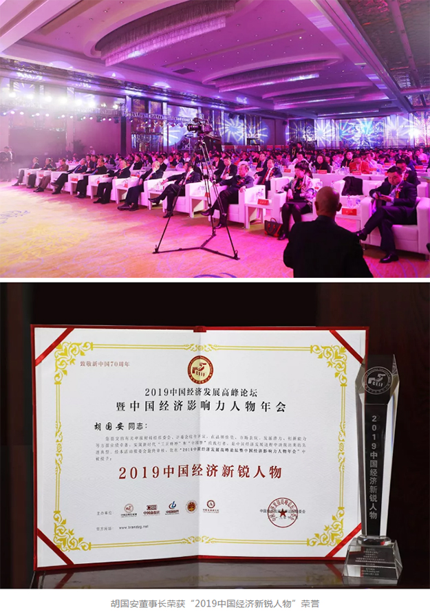 為弘揚新時代企業(yè)家精神,更好發(fā)揮企業(yè)家作用,挖掘一批具有持續(xù)創(chuàng)新能力、管理規(guī)范、信譽良好、社會責任感強的影響力人物和先進典型,進一步促進企業(yè)實現(xiàn)高質量發(fā)展,營造企業(yè)健康發(fā)展環(huán)境,共同為實現(xiàn)我國經濟高質量發(fā)展做出更多的貢獻。大會期間,舉行了“2019中國經濟影響力年度人物頒獎典禮”表彰活動,以“創(chuàng)新力、影響力、推動力、貢獻力、成長力”五大評選標準,對中國經濟發(fā)展做出突出貢獻的先進人物和先進單位進行了表彰。綠之韻集團董事長胡國安獲評“2019中國經濟新銳人物”。