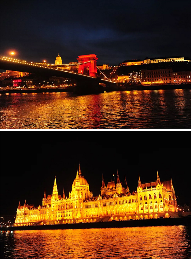夜游藍(lán)色多瑙河,兩岸風(fēng)光如同畫卷徐徐展開,在綠之韻人一聲聲驚嘆中,便可感知它的浪漫與唯美。幾座大橋左手牽著布達(dá),右手挽著佩斯,讓這兩座中古小城再無罅隙,一同沉溺在,多瑙河多情的懷抱里。而多瑙河三鎮(zhèn)(山丹丹、維謝格拉德鎮(zhèn)、埃斯泰爾戈姆鎮(zhèn))的游覽,讓綠之韻人遇見了“一夜兩城”的奇觀——第一天陽光明媚下的多瑙河與第二天大雪紛飛的多瑙河,這是運氣、是福氣,也是奇跡!
