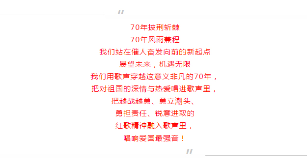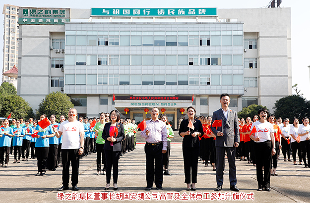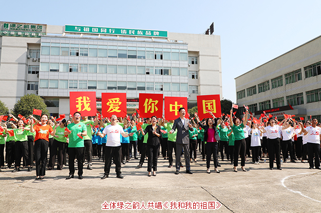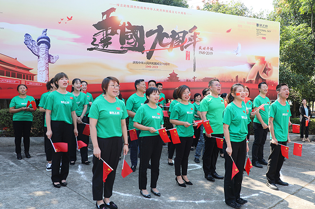 為慶祝新中國(guó)成立70周年,2019年9月29日,綠之韻集團(tuán)舉行國(guó)慶升旗儀式暨拉紅歌大賽,共同祝愿我們偉大的祖國(guó)繁榮昌盛、安定富強(qiáng)。綠之韻集團(tuán)董事長(zhǎng)胡國(guó)安、董事總裁勞嘉攜公司高管及全體員工參加活動(dòng)。