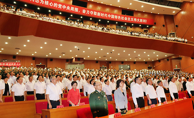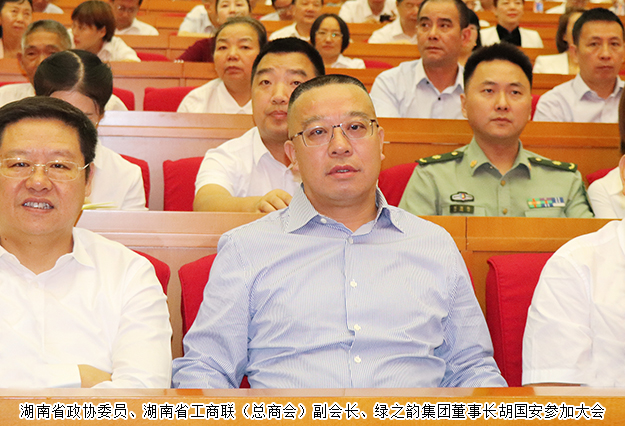 省領(lǐng)導(dǎo)傅奎、黃蘭香、王少峰、胡衡華、張劍飛、張宏森、李殿勛、劉蓮玉、畢毅在主席臺就座。楊正午、徐守盛、劉夫生、王克英、胡彪等全體在職省領(lǐng)導(dǎo)和老同志出席大會。離退休老同志代表,省直有關(guān)部門、省屬企業(yè)及在長本科院校主要負責(zé)同志,長沙市黨政軍群主要負責(zé)同志,各民主黨派省委、省工商聯(lián)負責(zé)人和無黨派人士代表,駐長軍事單位軍政主官及官兵代表,部分駐長全國人大代表、政協(xié)委員,杰出人士代表,省會各界群眾代表共1500余人參加大會。作為全國優(yōu)秀中國特色社會主義事業(yè)建設(shè)者、湖南省優(yōu)秀非公企業(yè)家代表之一,湖南省政協(xié)委員、湖南省工商聯(lián)(總商會)副會長、綠之韻集團董事長胡國安受邀參加大會。