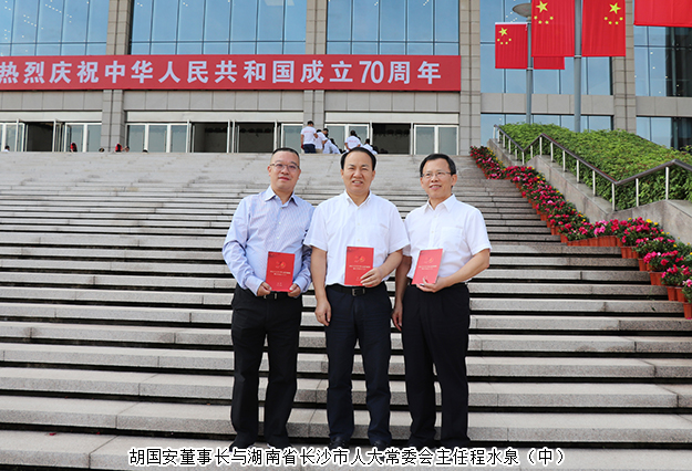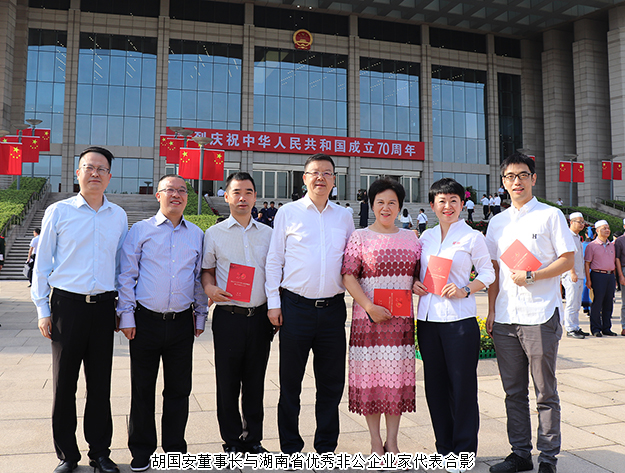 胡國安董事長表示,“優(yōu)秀建設(shè)者”既是黨和國家給予的至高榮譽,也是時代和人民賦予的重要使命。今天作為非公企業(yè)家代表參加湖南省慶祝中華人民共和國成立70周年大會感到無上榮耀,在今后工作中也一定不忘初心,牢記使命,砥礪前行,勇于擔(dān)當(dāng)作為,在建設(shè)中國特色社會主義偉大事業(yè)的歷史進程中再立新功!祝福偉大祖國更加繁榮昌盛!