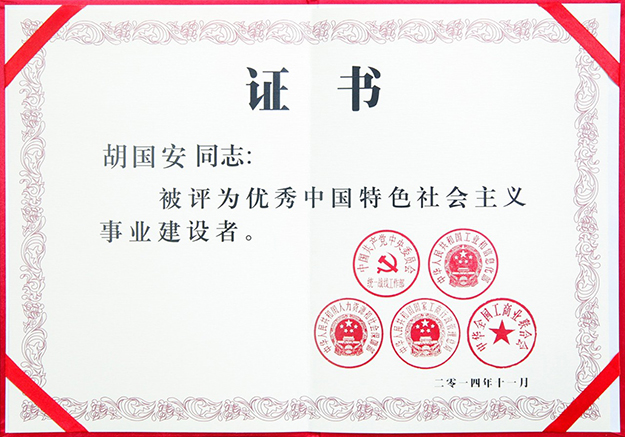 “第四屆全國優(yōu)秀中國特色社會主義事業(yè)建設(shè)者”胡國安董事長