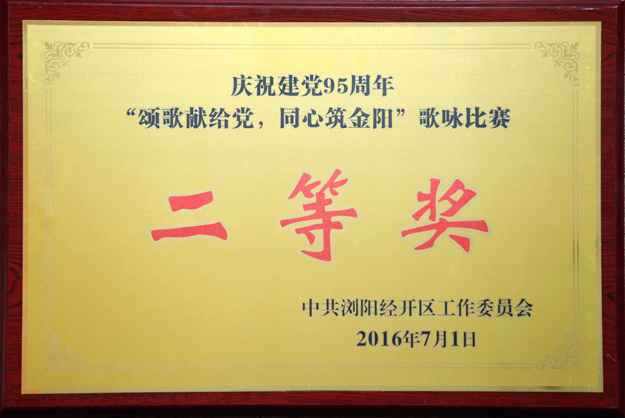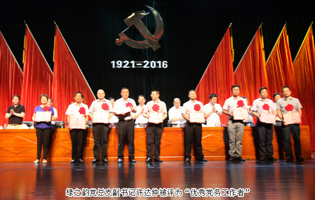 2016年7月1日,瀏陽經(jīng)開區(qū)慶祝建黨95周年表彰大會暨合唱比賽在園區(qū)金陽文化藝術中心隆重召開。全體黨委領導、機關各支部、各非公經(jīng)濟黨組織以及園區(qū)各企業(yè)代表團等參加會議。會上,綠之韻集團黨總支部憑借出色的黨建工作再次被評為“先進基層黨組織”, 綠之韻黨總支副書記許達仲被評為“優(yōu)秀黨務工作者”,公司員工黃姣、楊丹被評為園區(qū)“優(yōu)秀共產(chǎn)黨員”。