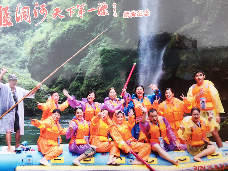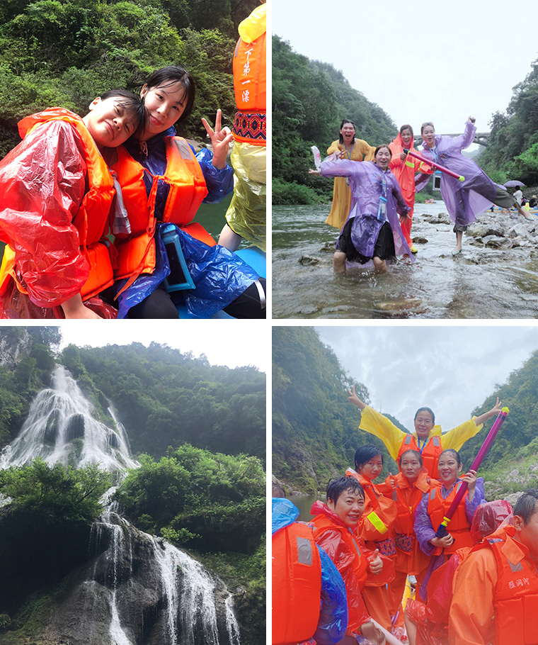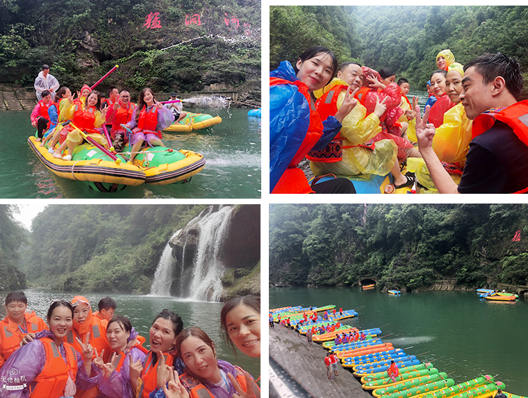 “張家界看山,猛洞河玩水。”在猛洞河,綠之韻家人們乘坐著小筏,從“哈妮宮”出發(fā),順?biāo)拢蝗~扁舟,在原始次生林的高山峽谷之中,身著救身衣、乘皮舟、闖險(xiǎn)灘、博激流、沿途觀美景、沐瀑流、打水仗、過峽關(guān),出沒浪端谷底,途經(jīng)三角巖、雞籠門、捏土瀑布、閻王灘、落水坑瀑布、夢思峽等數(shù)十個(gè)景點(diǎn),兩岸秀麗的風(fēng)光無不令人叫絕觀止。家人們在漂流途中放歌長嘯,或搏浪闖灘,或戲水嬉鬧,找回快樂童真的自我。
