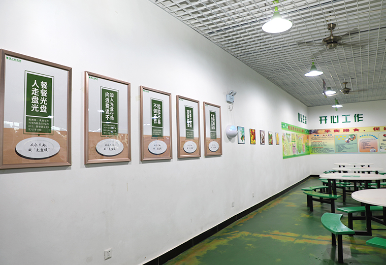 為積極響應(yīng)“光盤行動(dòng)”,綠之韻集團(tuán)食堂在員工用餐時(shí)嚴(yán)格遵循“吃多少打多少,少量多次、按需打飯”原則,結(jié)合疫情防控工作由食堂工作人員統(tǒng)一分菜,打菜打飯先打少,不夠再加,保證吃飽不浪費(fèi)。同時(shí),員工自行攜帶碗筷進(jìn)行就餐,最大程度預(yù)防減少各種疾病交叉?zhèn)鞑ァT谑程脙?nèi)部,還張貼有多張宣傳標(biāo)語(yǔ),時(shí)刻提醒并引導(dǎo)員工養(yǎng)成節(jié)約糧食、文明用餐的好習(xí)慣。