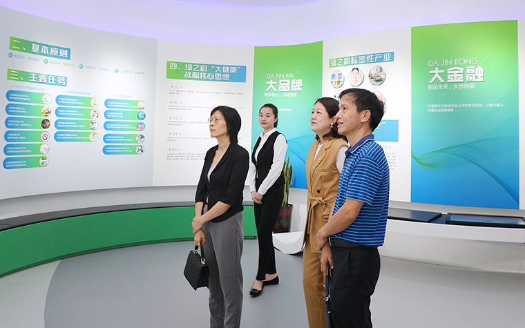 調(diào)研組一行參觀了綠之韻國際會議中心形象展示廳。展廳以綠之韻“水的精神”為貫穿構(gòu)想,運用現(xiàn)代化、科技化、智能化的創(chuàng)新技術(shù)手段,全方位、多角度生動呈現(xiàn)了綠之韻十七年的發(fā)展歷程。綠之韻“以產(chǎn)品為導(dǎo)向”的發(fā)展理念、“水的精神和家文化”的企業(yè)特質(zhì)以及誠實守信、產(chǎn)業(yè)富民、回饋社會的良好企業(yè)形象得到了調(diào)研組一行的肯定和贊譽。