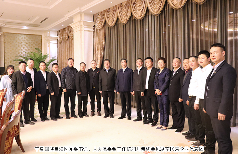 為進(jìn)一步促進(jìn)湘寧兩地經(jīng)貿(mào)交流合作,推動雙方企業(yè)精準(zhǔn)對接,實現(xiàn)優(yōu)勢互補(bǔ),2020年11月16-19日,湖南省政協(xié)副主席、省工商聯(lián)主席張健,長沙市政協(xié)副主席、市工商聯(lián)主席彭繼球攜湖南民營企業(yè)代表團(tuán)赴寧夏考察調(diào)研。寧夏回族自治區(qū)黨委書記、人大常委會主任陳潤兒親切會見了代表團(tuán)一行。寧夏回族自治區(qū)黨委常委、秘書長趙永清,自治區(qū)黨委常委、統(tǒng)戰(zhàn)部部長白尚成,自治區(qū)政協(xié)副主席王紫云,自治區(qū)商務(wù)廳廳長徐曉平,自治區(qū)黨委統(tǒng)戰(zhàn)部副部長、工商聯(lián)黨組書記魏莉,自治區(qū)工商聯(lián)副主席康俊杰;銀川市委常委,市人民政府副市長李鴻儒,銀川市政府副市長韓江龍;吳忠市政協(xié)主席孫瑛,市人民政府副市長戴培吉等領(lǐng)導(dǎo)陪同調(diào)研。湖南省工商聯(lián)副主席、步步高集團(tuán)總裁陳志強(qiáng),湖南省工商聯(lián)(總商會)副會長、綠之韻集團(tuán)董事長胡國安等企業(yè)家、商會會長參加調(diào)研。