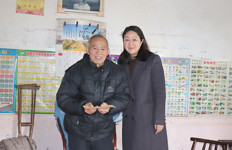 美麗的邊洲村村容整潔、樓房林立,史習(xí)忠老爺爺家的紅磚房就額外打眼。史爺爺已經(jīng)近70歲高齡,身體不好,做過手術(shù)之后只能拄著拐杖行動(dòng),小孫女患有先天性心臟病,一家人的生活都靠?jī)鹤釉谕獯蛄愎ぞS持。慰問組的來(lái)訪,讓史爺爺特別開心,不斷地感謝黨和政府以及綠之韻企業(yè)送來(lái)的溫暖,張羅著要老伴拿出自家炸的紅薯片招待客人。勞嘉理事長(zhǎng)問候老人家的身體情況,親切叮囑:史爺爺一定要吃好穿暖,安心過一個(gè)溫暖的好年!
