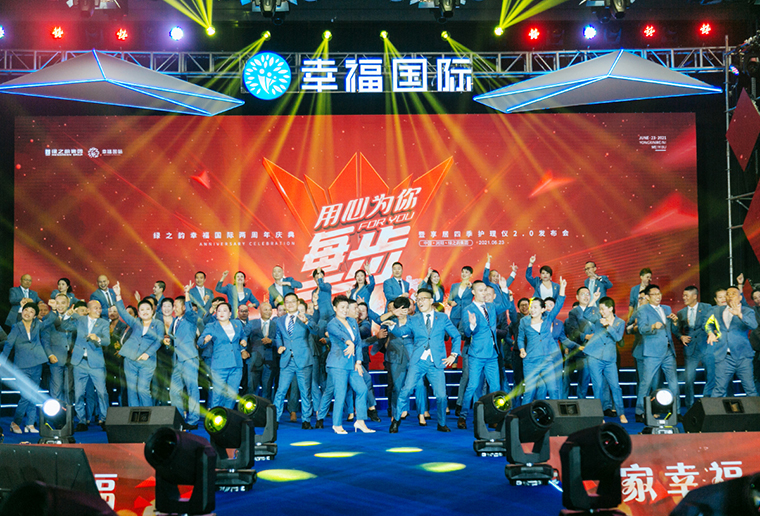 2021年6月23日,用心為你每一步·綠之韻幸福國(guó)際兩周年慶典暨享居四季護(hù)理儀2.0發(fā)布會(huì)在集團(tuán)總部國(guó)際會(huì)議中心盛大舉行。綠之韻集團(tuán)董事長(zhǎng)胡國(guó)安,董事、總裁勞嘉,副總裁胡均安,執(zhí)行總經(jīng)理夏運(yùn)良及高管團(tuán)隊(duì),與來自全國(guó)各地的2000余名綠之韻家人匯聚一堂,共襄盛舉。大會(huì)全程通過PC、移動(dòng)端在線互動(dòng)視頻直播,線上40000多人共同收看和分享了大會(huì)盛況。