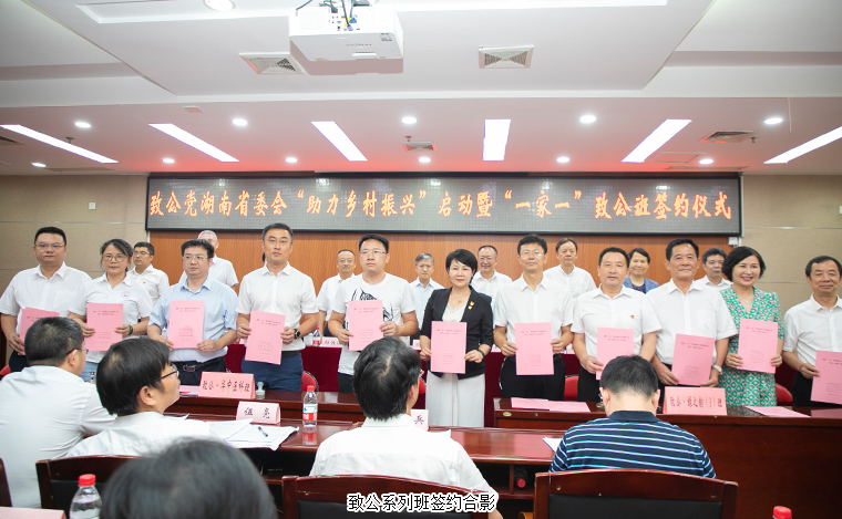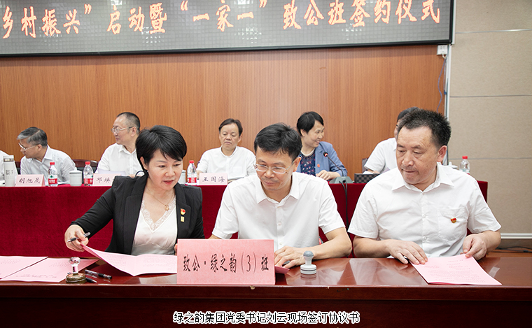 2021年7月26日,致公黨湖南省委會“助力鄉(xiāng)村振興”啟動暨“一家一”致公班簽約儀式在長沙舉行。湖南省政協(xié)副主席、致公黨湖南省委會主委胡旭晟;中共湖南省委統(tǒng)戰(zhàn)部副部長鄧煥生;致公黨湖南省委會專職副主委向佐誼,省委會副主委、長沙市人大副主任王國海,省委會副主委、省體育局局長羅雙全,省委會副主委、湖南師范大學(xué)副校長謝資清,省委會副主委劉丹軍,省委會秘書長、二級巡視員田宗之;中共安化縣委副書記、安化縣人民政府縣長肖義等領(lǐng)導(dǎo)出席。綠之韻集團(tuán)黨委書記劉云參加會議。