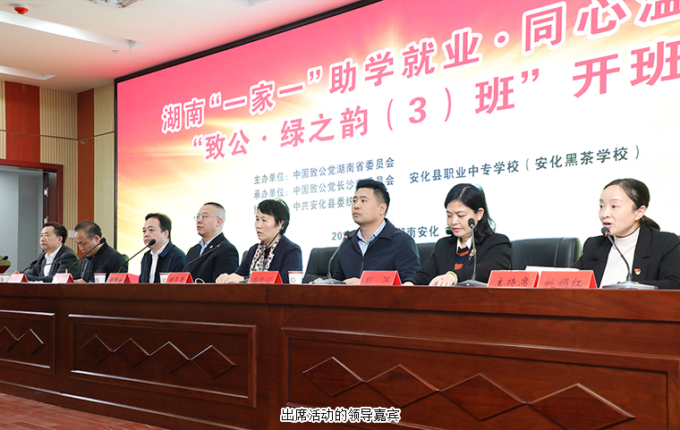 開班儀式上,安化縣教育局黨組成員、副局長劉勝輝致歡迎辭,致公黨湖南省委會副主委謝資清為安化縣職業(yè)中專學(xué)校(安化縣黑茶學(xué)校)授“致公助學(xué)基地”牌匾,致公黨長沙市委會秘書長兼辦公室主任歐陽明為“致公·綠之韻3班”授牌;湖南省政協(xié)委員、致公黨湖南省委會互聯(lián)網(wǎng)+專委會名譽(yù)主任、綠之韻集團(tuán)董事長胡國安向安化縣職業(yè)中專學(xué)校(安化縣黑茶學(xué)校)捐贈20萬元,用于“致公·綠之韻3班”建設(shè)和專業(yè)人才培養(yǎng)。