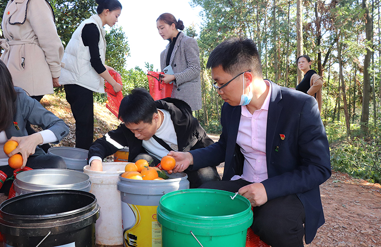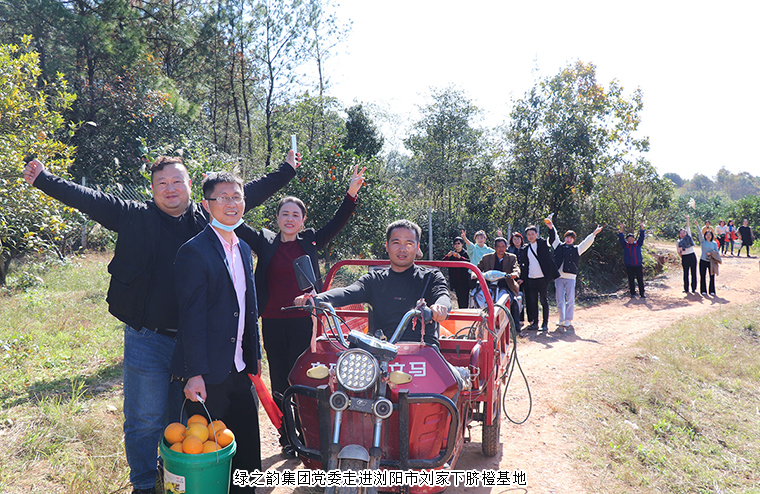 冬季暖陽,橙橘飄香,瀏陽市劉家下臍橙基地又迎來豐收季。2021年11月26日,綠之韻集團(tuán)黨委組織綠之韻集團(tuán)公益基金會支部、綠之韻集團(tuán)二支部、綠之韻集團(tuán)八支部、綠之韻集團(tuán)保健日用品支部、綠之韻集團(tuán)國際大酒店支部一行齊赴劉家下臍橙基地,開展“推進(jìn)‘一村一品’ 助力鄉(xiāng)村振興”主題活動。綠之韻集團(tuán)副總裁胡均安、黨委書記劉云、市場營銷中心總經(jīng)理戴三省、審計監(jiān)察部總經(jīng)理劉濤帶領(lǐng)各支部書記、黨員參加。