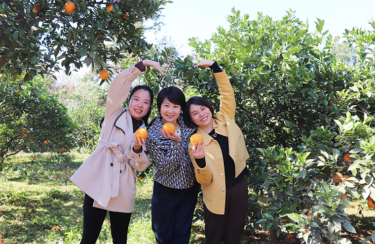 連綿起伏的山嶺上,數(shù)百畝的臍橙枝繁葉茂、碩果累累,一顆顆渾圓金黃的橙果擠在枝頭,微風(fēng)拂過,橙香馥郁。黨團(tuán)愛心志愿者們穿梭于林中,大大小小的臍橙墜滿枝頭,大家挑選采摘、剪枝裝箱,好不熱鬧。邊品嘗著甜橙的美味,邊在橙樹下合影留念,冬日的暖陽、金黃的果實(shí)、甜美的笑容和濃濃的橙香,沁潤在果園。