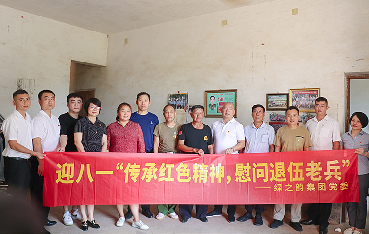 為紀(jì)念中國(guó)人民解放軍建軍95周年,2022年8月1日,綠之韻集團(tuán)黨委組織開展了迎八一“傳承紅色精神·慰問退伍老兵”主題黨日活動(dòng)。綠之韻集團(tuán)副總裁胡均安、夏運(yùn)良,黨委書記劉云、黨委副書記許達(dá)仲帶領(lǐng)著十余名退伍軍人前往綠之韻集團(tuán)鄉(xiāng)村振興定點(diǎn)幫扶和對(duì)口支援點(diǎn)——瀏陽(yáng)市北盛鎮(zhèn)邊洲村,向村里的退伍老兵送上慰問金和濃濃的節(jié)日祝福。