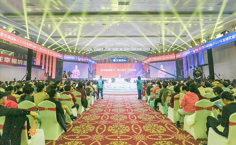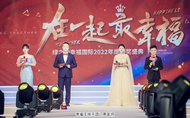 2023年1月11日晚,在一起·最幸福——綠之韻幸福國際2022年度頒獎盛典在集團(tuán)總部國際會議中心盛大舉行。綠之韻集團(tuán)董事長胡國安,董事、總裁勞嘉,副總裁胡均安,副總裁、幸福導(dǎo)師夏運良及高管團(tuán)隊,與來自全國各地的1000余名綠之韻家人匯聚一堂,共襄盛舉。大會全程通過PC、移動端在線互動視頻直播,線上近60000人次共同收看和分享了大會盛況。