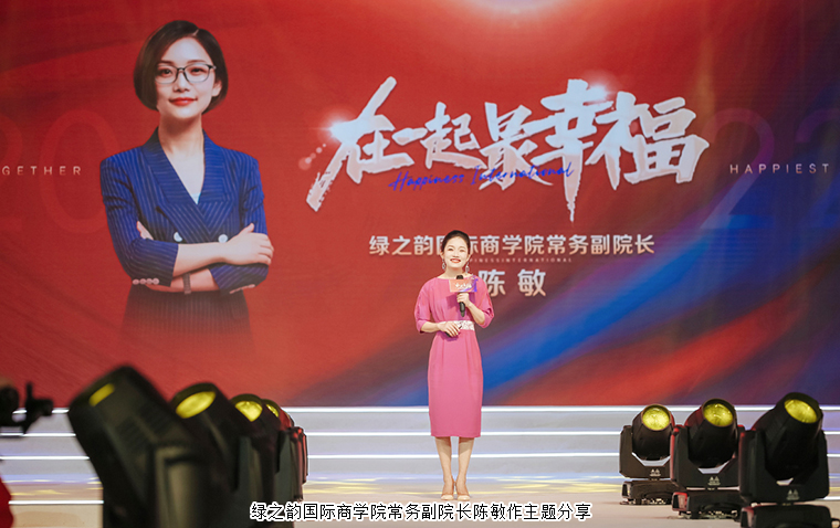 隨后,綠之韻國際商學(xué)院常務(wù)副院長陳敏作《在一起,最幸福》的主題分享,與綠之韻事業(yè)伙伴們一起回顧了綠之韻幸福國際第一個三年成長路上的幸福縮影。