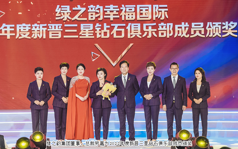 在幸福的道路上,有這樣一群堅實的守護(hù)者,他們心懷熱愛,步履不停,用夢想融合新生,用榮耀成就巔峰,他們是為幸福奮斗的高階精英,他們是本次進(jìn)入鉆石俱樂部的最強(qiáng)王者。勇者無畏,破繭成蝶,迎來屬于他們的鉆石榮耀之旅。綠之韻集團(tuán)董事、總裁勞嘉,綠之韻集團(tuán)副總裁胡均安,綠之韻國際商學(xué)院執(zhí)行院長黎芋成,綠之韻國際商學(xué)院常務(wù)副院長陳敏,綠之韻國際商學(xué)院副院長、特聘教授侯俊霞分別為綠之韻幸福國際2022年度新晉一星、二星、三星鉆石俱樂部成員頒獎,獲獎?wù)哧悤詵|、蘇裕涵、林景云分享獲獎感言。