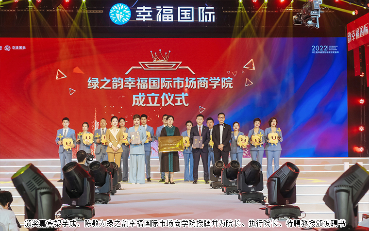 會議現(xiàn)場還舉行了綠之韻幸福國際商學(xué)院成立儀式,綠之韻國際商學(xué)院執(zhí)行院長黎芋成、綠之韻國際商學(xué)院常務(wù)副院長陳敏為綠之韻幸福國際市場商學(xué)院授牌,為院長、執(zhí)行院長、特聘教授、2023屆特聘市場講師頒發(fā)聘書。綠之韻幸福國際商學(xué)院的成立將成為綠之韻幸福國際的文化名片,將以最具市場化的姿態(tài)為幸福代言人提供最為廣闊的舞臺。