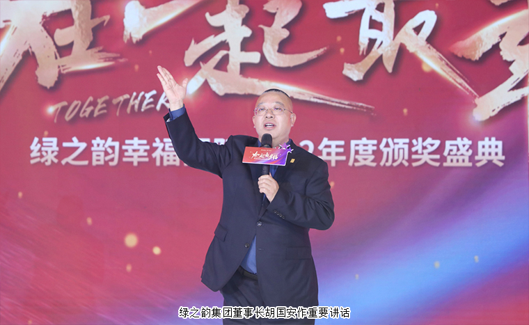 “路雖遠(yuǎn),行必至,事雖難,做必成”,大會最后,在全場最為熱烈的掌聲中,綠之韻集團(tuán)董事長胡國安上臺向所有幸福代言人贈寄語牌匾,并講話。他首先向大會現(xiàn)場以及通過在線互動視頻觀看本次大會盛況的綠之韻家人致以熱烈的歡迎和誠摯的問候,并向每一位獲獎?wù)弑硎緹崃业淖YR。他表示,感謝每一位奮斗的幸福代言人,三年來,你們不畏艱難、不辭辛勞、不懼疫情,用不同形式,在不同地點,全力的傳播著公司的企業(yè)文化,傳承中華五千年養(yǎng)生文化,積極推動科技讓中醫(yī)養(yǎng)生走進(jìn)千家萬戶的理念,為你們點贊!向所有的幸福代言人致敬!你們奮斗的身影,是2022最美的風(fēng)景!回看來路,繁花似錦;瞻望前程,乘風(fēng)鼓翼。乘著黨的二十大與兩會勝利召開的浩蕩東風(fēng),我們滿懷激情的跨入充滿希望的2023年。在一起,最幸福,伴著市場環(huán)境加速回暖、營商環(huán)境持續(xù)優(yōu)化的鏗鏘足音,未來三年,在集團(tuán)公司的全力支持下,在現(xiàn)場每一位和通過視頻收看的綠之韻家人的支持下,我們一定能在新起點上再創(chuàng)新輝煌!