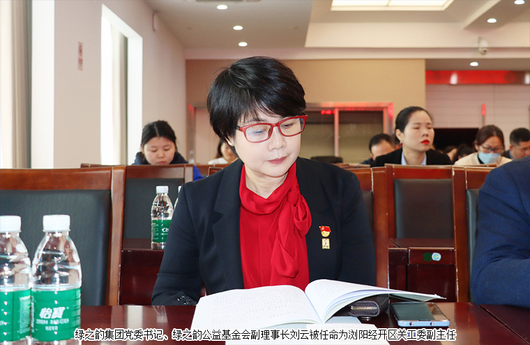 會(huì)上,瀏陽(yáng)經(jīng)開(kāi)區(qū)黨工委委員、管委會(huì)副主任、關(guān)工委主任何六生主持會(huì)議。瀏陽(yáng)經(jīng)開(kāi)區(qū)組織工作局局長(zhǎng)、關(guān)工委常務(wù)副主任宋孟宣讀瀏陽(yáng)經(jīng)濟(jì)技術(shù)開(kāi)發(fā)區(qū)管理委員會(huì)《關(guān)于調(diào)整瀏陽(yáng)經(jīng)開(kāi)區(qū)關(guān)心下一代工作委員會(huì)成員的通知》,綠之?集團(tuán)黨委書(shū)記、綠之韻公益基金會(huì)副理事長(zhǎng)劉云被任命為瀏陽(yáng)經(jīng)開(kāi)區(qū)關(guān)工委副主任。