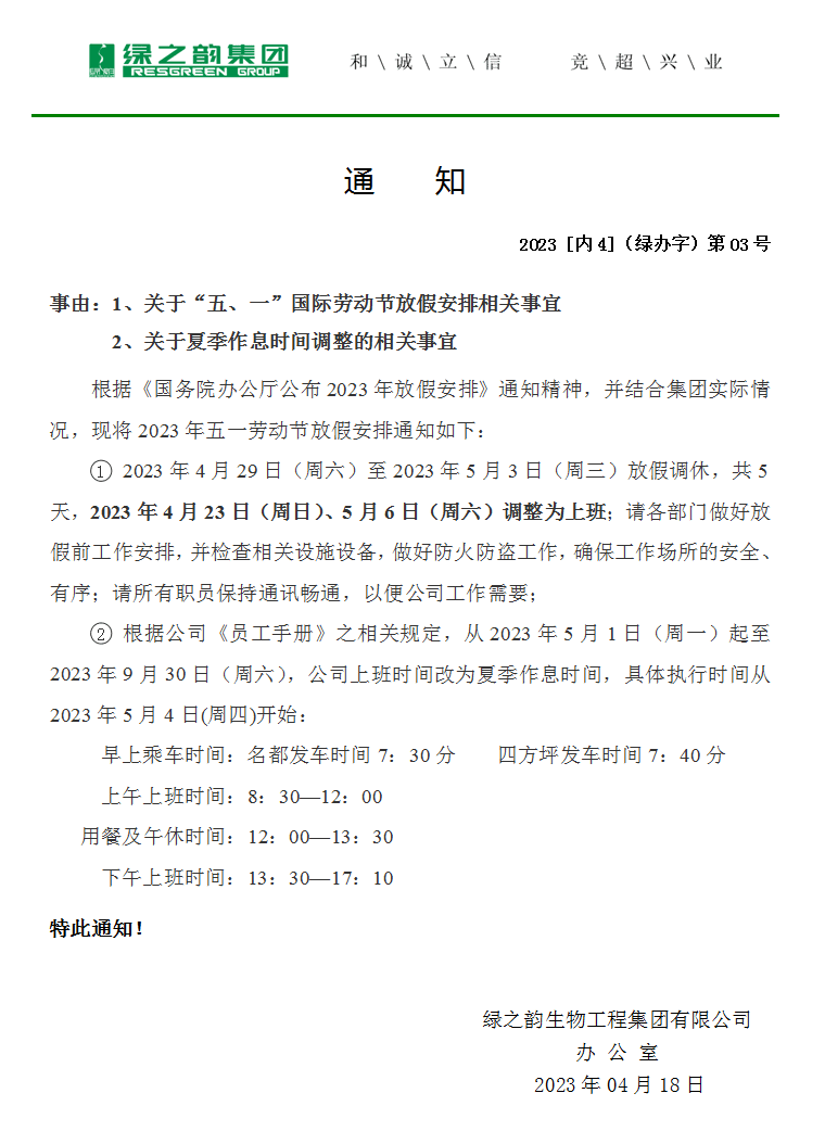通 知 丨關于“五、一勞動節(jié)”放假安排和夏季作息時間調整的相關事宜