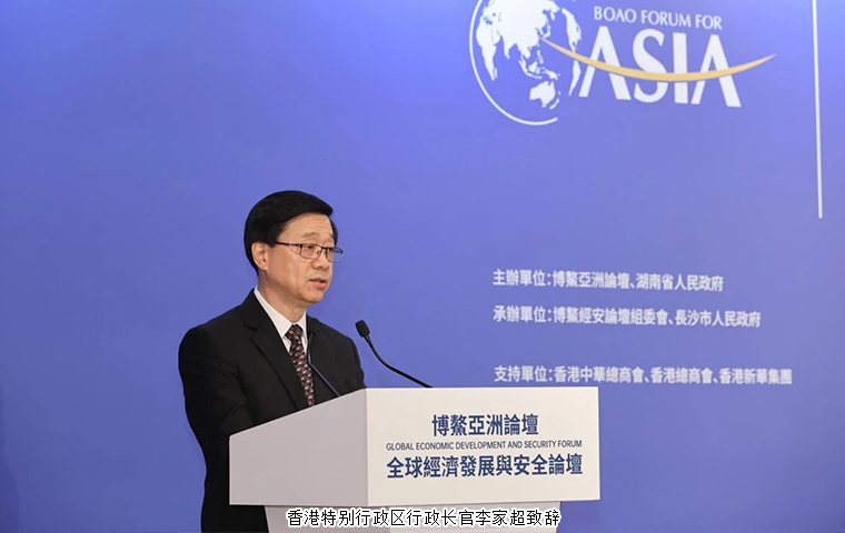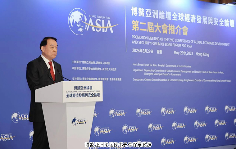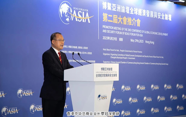 聚焦世界期待,推開(kāi)交流窗口。5月29日上午,博鰲亞洲論壇全球經(jīng)濟(jì)發(fā)展與安全論壇第二屆大會(huì)推介會(huì)在香港嘉里酒店舉行。本次活動(dòng)由博鰲亞洲論壇、湖南省人民政府共同主辦,博鰲經(jīng)安論壇組委會(huì)、長(zhǎng)沙市人民政府共同承辦,香港中華總商會(huì)、香港總商會(huì)、香港新華集團(tuán)提供支持。博鰲亞洲論壇秘書(shū)長(zhǎng)李保東,香港特別行政區(qū)行政長(zhǎng)官李家超,湖南省人民政府副省長(zhǎng)周海兵,香港中華總商會(huì)會(huì)長(zhǎng)蔡冠深,中共長(zhǎng)沙市委常委、市人民政府常務(wù)副市長(zhǎng)彭華松,博鰲經(jīng)安論壇大會(huì)主席曾偉雄出席推介會(huì)并致辭。