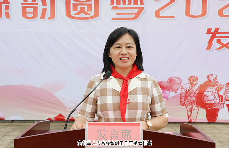 活動(dòng)最后,安化縣人大常委會(huì)副主任李艷云講話。她首先代表安化縣委、縣政府向胡國(guó)安董事長(zhǎng)及公益團(tuán)隊(duì)表示崇高的敬意和衷心的感謝。她表示,捐資助學(xué)、尊師重教是社會(huì)的偉統(tǒng)美德。胡國(guó)安董事長(zhǎng)作為從安化走出去的優(yōu)秀知名企業(yè)家代表,是慈善大愛(ài)的楷模。長(zhǎng)期以來(lái)情系家鄉(xiāng),在愛(ài)心奉獻(xiàn)、回報(bào)桑梓的公益道路上一直不遺余力、竭盡所能,從建橋修路、精準(zhǔn)扶貧到脫貧攻堅(jiān),從產(chǎn)業(yè)幫扶、愛(ài)心助學(xué)到鄉(xiāng)村振興等無(wú)不體現(xiàn)了一位企業(yè)家高度的社會(huì)責(zé)任感和使命感。此次“綠韻圓夢(mèng)獎(jiǎng)教獎(jiǎng)學(xué)金”的頒發(fā),也必將激發(fā)全體教師更大的工作熱情,更好地授業(yè)解惑,愛(ài)崗敬業(yè),教書育人;激勵(lì)全體學(xué)生更加努力拼搏,立志成才,奮發(fā)向上。必將影響和帶動(dòng)社會(huì)各界來(lái)關(guān)注、支持家鄉(xiāng)的教育工作,關(guān)注、支持家鄉(xiāng)的發(fā)展和建設(shè)。她希望,同學(xué)們繼續(xù)保持品學(xué)兼優(yōu)的品行,樹(shù)立遠(yuǎn)大理想,刻苦學(xué)習(xí),努力奮斗;常懷感恩之心去學(xué)習(xí)和工作,常念感激之情去做事和做人,牢記綠之韻集團(tuán)、社會(huì)、國(guó)家的教育和幫助,用實(shí)際行動(dòng)去回饋社會(huì)、感恩社會(huì);希望“綠韻圓夢(mèng)”獎(jiǎng)教獎(jiǎng)學(xué)金規(guī)范管理,科學(xué)運(yùn)作,讓大橋?qū)W校更多優(yōu)秀的教師和學(xué)生得到嘉獎(jiǎng),得到鼓勵(lì),最大限度地發(fā)揮獎(jiǎng)教獎(jiǎng)學(xué)的效應(yīng)。她呼吁,希望有更多的社會(huì)愛(ài)心人士像胡國(guó)安董事長(zhǎng)這樣,以實(shí)際行動(dòng)關(guān)心支持教育事業(yè)的發(fā)展,關(guān)愛(ài)激勵(lì)青少年的成長(zhǎng)。