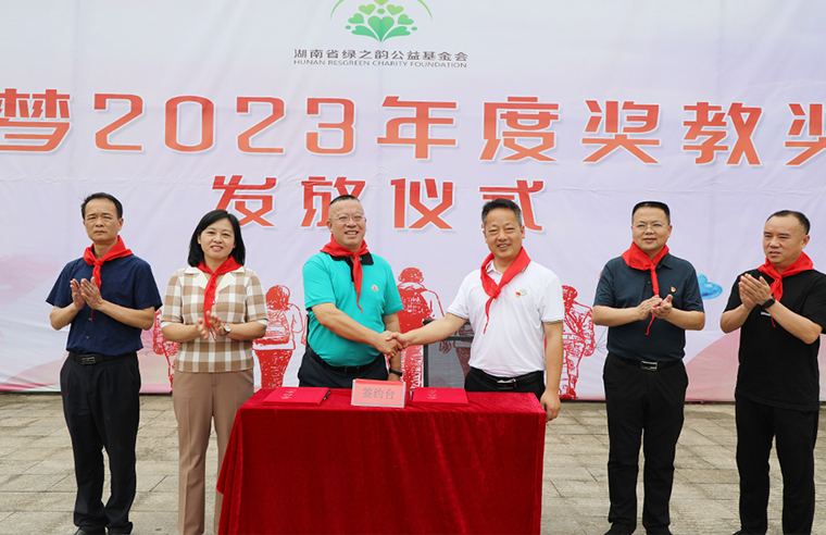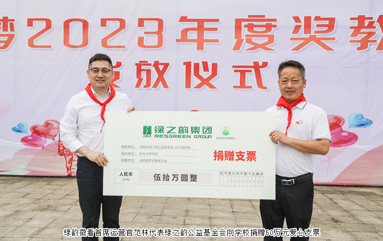 心之所向,行之所往,心中有光,何懼路長(zhǎng)。2023年6月15日,“綠韻圓夢(mèng)獎(jiǎng)教獎(jiǎng)學(xué)金”發(fā)放儀式活動(dòng)走進(jìn)安化大橋?qū)W校。湖南省綠之韻公益基金會(huì)“綠韻圓夢(mèng)行動(dòng)”捐贈(zèng)50萬(wàn)元愛(ài)心資金在安化大橋?qū)W校設(shè)立“獎(jiǎng)教獎(jiǎng)學(xué)金”,每年向?qū)W校捐贈(zèng)10萬(wàn)元開(kāi)展獎(jiǎng)學(xué)獎(jiǎng)教活動(dòng),支持鄉(xiāng)村振興建設(shè)和教育事業(yè)發(fā)展。