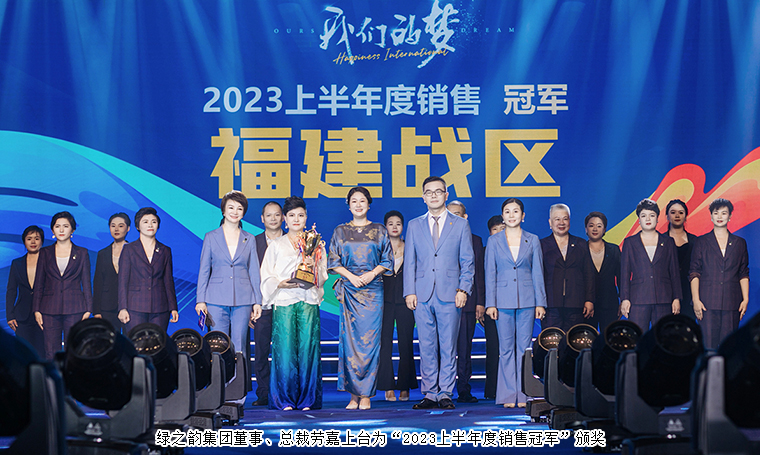 大會(huì)現(xiàn)場(chǎng),綠之韻集團(tuán)董事、總裁勞嘉上臺(tái)為“2023上半年度銷售冠軍”頒獎(jiǎng)并送上祝福。綠之韻幸福國(guó)際發(fā)展委委員袁夢(mèng)作《夢(mèng)想的力量》主題分享。