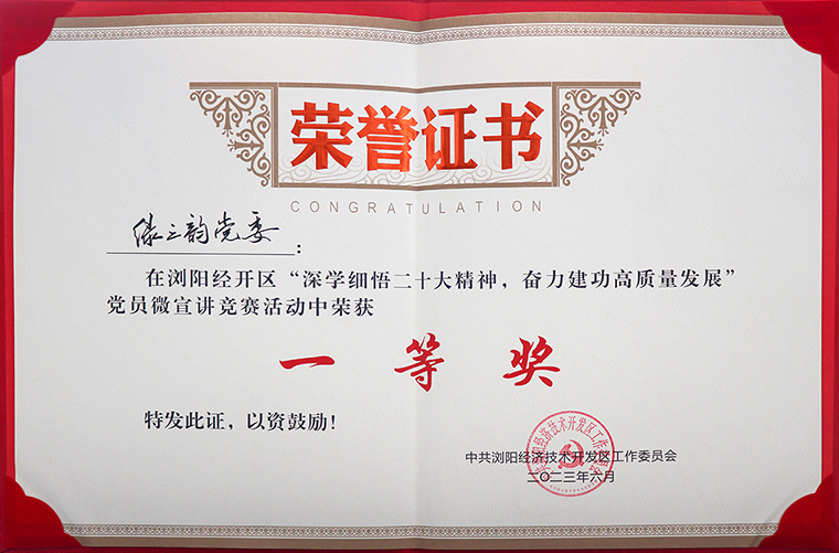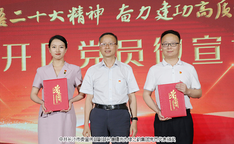 為深入學(xué)習(xí)宣傳貫徹黨的二十大精神,推動(dòng)黨的二十大精神落地見(jiàn)效,落實(shí)省委、市委組織部“一月一課一片一實(shí)踐”活動(dòng)要求,不斷激發(fā)廣大青年黨員干部的榮譽(yù)感、責(zé)任感、使命感,2023年6月21日,瀏陽(yáng)經(jīng)開(kāi)區(qū)舉辦“深學(xué)細(xì)悟黨的二十大精神,奮力建功園區(qū)高質(zhì)量發(fā)展”黨員微宣講競(jìng)賽活動(dòng)。中共長(zhǎng)沙市委宣傳部副部長(zhǎng)、一級(jí)調(diào)研員唐曙光,瀏陽(yáng)經(jīng)開(kāi)區(qū)黨工委書(shū)記鄭以仁,長(zhǎng)沙市委兩新工委專職副書(shū)記肖劍鋒,瀏陽(yáng)經(jīng)開(kāi)區(qū)黨工委委員、管委會(huì)副主任、企業(yè)黨委書(shū)記何六生,區(qū)黨工委委員、紀(jì)工委書(shū)記肖賽男等領(lǐng)導(dǎo)出席活動(dòng)。綠之韻集團(tuán)黨委書(shū)記劉云、工會(huì)主席馮紅帶領(lǐng)集團(tuán)多名黨員代表參加活動(dòng)。綠之韻集團(tuán)選送的《青春中國(guó)》作品以全場(chǎng)最高分?jǐn)孬@一等獎(jiǎng),向建黨102周年獻(xiàn)禮。