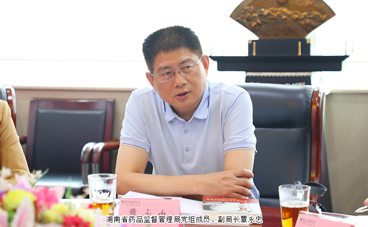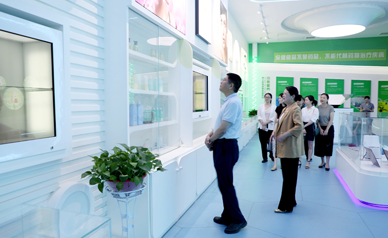 2023年8月10日,湖南省藥品監(jiān)督管理局黨組成員、副局長覃永忠,湖南省藥品審評與不良反應檢測中心副部長潘靜,湖南省藥品監(jiān)督管理局化妝品監(jiān)督管理處一級主任科員陳李一行蒞臨綠之韻調研指導。湖南省政協(xié)委員、綠之韻集團董事總裁勞嘉,產品綜合管理部產品總監(jiān)王薇等公司領導陪同。