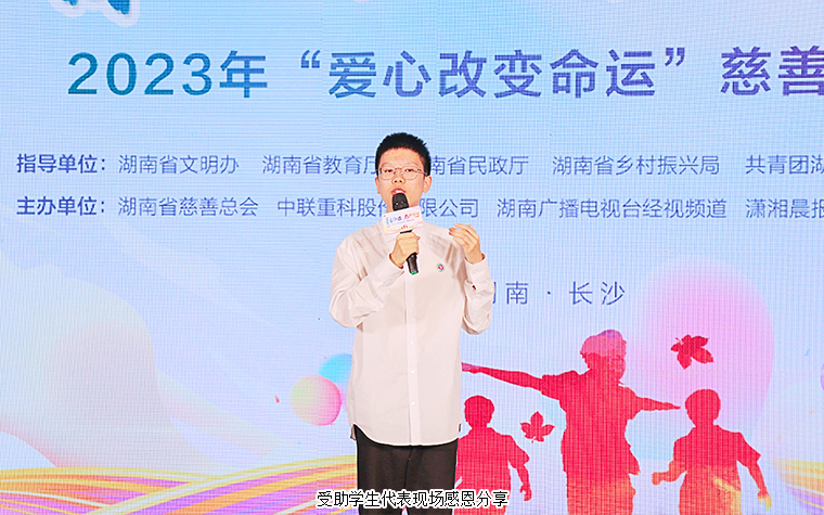 活動(dòng)現(xiàn)場(chǎng)播放了“愛(ài)心改變命運(yùn)”2023年主題視頻以及湖南14個(gè)市州慈善會(huì)助學(xué)成果視頻。湖南省民政廳黨組書(shū)記、廳長(zhǎng)曹忠平致辭。他在致辭中指出,慈善事業(yè)是一項(xiàng)獻(xiàn)愛(ài)心、暖人心、惠民生的崇高事業(yè)。人生之善莫過(guò)于助人,助人之德莫過(guò)于助學(xué),慈善助學(xué)是改變困境學(xué)子的希望霞光。他呼吁,社會(huì)各界攜起手來(lái),共同加入“愛(ài)心改變命運(yùn)”慈善助學(xué)行動(dòng),用博大的愛(ài)心澆灌未來(lái)。