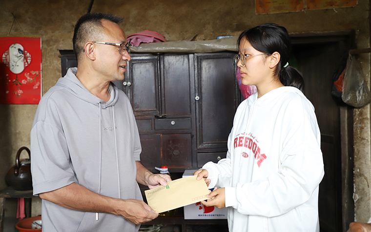 母親身體不好,主要在租房照顧兩姐妹,偶爾做點(diǎn)零工。全家收入靠父親外出務(wù)工賺取。今年高考,姐妹倆憑著努力和默契,以相近的分?jǐn)?shù)考上了同個大學(xué)。因為家里有建檔立卡脫貧戶檔案,學(xué)校給姐妹倆免了學(xué)費(fèi),但是每個學(xué)期2000多一人的學(xué)雜費(fèi)和到城市里求學(xué)的生活費(fèi)都讓這個家庭犯了難。彭銘總裁帶著綠之韻愛心志愿者的出現(xiàn),仿若給整個家庭捉襟見肘的困境中打開了一道希望的口子,照亮了她們的求學(xué)之路。彭總鼓勵雙胞胎姐妹,現(xiàn)在的你們羽翼尚未豐滿,還沒有能力改變現(xiàn)狀,但只要你們一直堅持,努力學(xué)習(xí),未來一定能讓父母過上好日子。