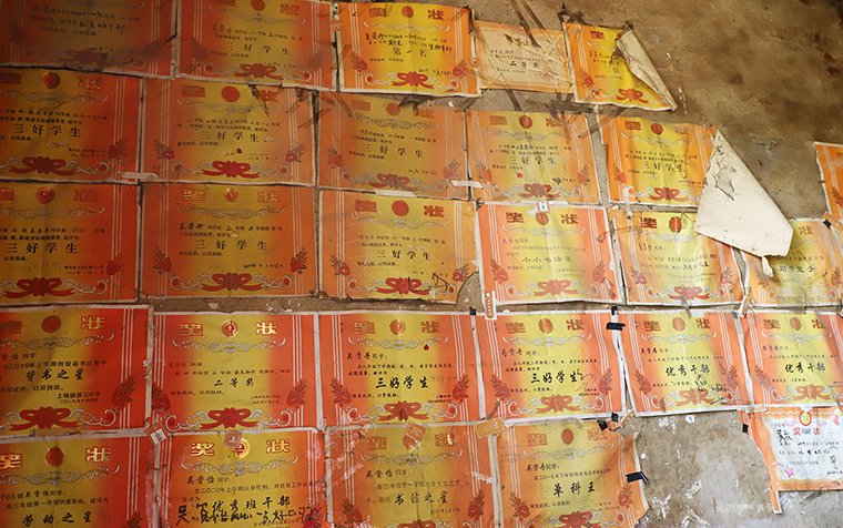 來到資丹家里,說家徒四壁也不為過。資丹父母都是二級殘疾,沒有勞動能力,除了政府的低保補(bǔ)貼沒有其他收入,夫婦倆務(wù)農(nóng)也只能勉強(qiáng)滿足一家人的口糧。家中幾姊妹都在學(xué)齡期,家里最大的開銷除了父母的醫(yī)療費(fèi)就是孩子們的學(xué)費(fèi),幸虧還有村委鄉(xiāng)鄰和自家伯父伯母幫襯。在資丹家里,雖然房間陳設(shè)簡單,但掛了滿滿一面墻的大紅獎狀十分搶眼,那是這個家最好的“裝飾”,是整個家庭的期盼,也是資丹努力的證明。