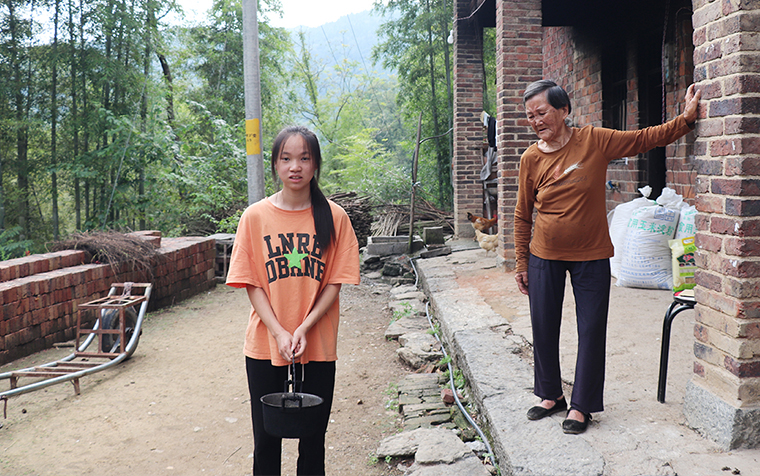 前往貴姣家里的盤山公路繞啊繞,一路上遇到了趕牛羊的娃兒,也遇到了背著書包走路上學(xué)的孩子。同貴姣聊起來,她從家里去鎮(zhèn)上要走一個多小時,再轉(zhuǎn)乘公交去學(xué)校上學(xué)。十幾年來,她就是在這樣的山路上長大。幼時因為家里困難,母親很早就離開,留下體弱的父親拉扯著貴姣磕磕碰碰長大,生活拮據(jù)且清貧。家中奶奶已經(jīng)80高壽,常年多病,家中全靠父親一人里外打點(diǎn),既要外出務(wù)工賺錢,又要照顧家里老人。屋漏偏逢連夜雨,貴姣高中畢業(yè)后,還沒拿到大學(xué)錄取通知書,父親就因為身體原因突然去世,奶奶受到打擊,身體每況愈下,貴姣也對未來感到一片茫然。