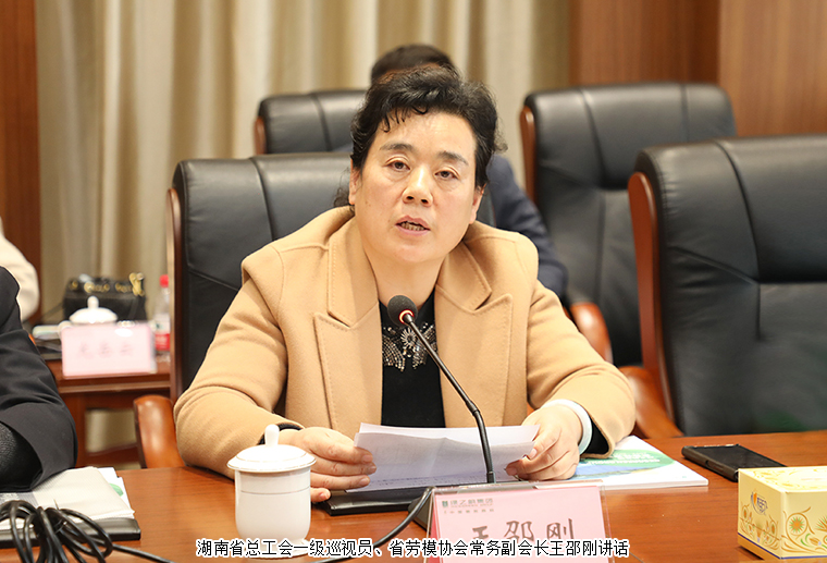 湖南省總工會一級巡視員、省勞模協(xié)會常務(wù)副會長王邵剛講話。她表示,習(xí)近平總書記在2020年全國勞動(dòng)模范和先進(jìn)工作者表彰大會上指出,“勞動(dòng)模范是民族的精英、人民的楷模,是共和國的功臣。我國是人民當(dāng)家作主的社會主義國家,黨和國家始終堅(jiān)持全心全意依靠工人階級方針,始終高度重視工人階級和廣大勞動(dòng)群眾在黨和國家事業(yè)發(fā)展中的重要地位,始終高度重視發(fā)揮勞動(dòng)模范和先進(jìn)工作者的重要作用。”勞模一直在提升行業(yè)的形象方面發(fā)揮著重要作用,我們要加強(qiáng)勞模的聯(lián)系,勾起一張橫向到面、縱向到底的網(wǎng)絡(luò),增強(qiáng)勞模之間的交流與溝通;要做好勞模的宣傳工作,宣傳勞模工作敬業(yè)、無私奉獻(xiàn)的精神和勞模的技能;要發(fā)揮勞模本身的榜樣力量,引領(lǐng)更多的人在工作中追求卓越,不斷超越自己;要落實(shí)勞模待遇,為勞模辦實(shí)事、做好事、解難事,將組織的溫暖關(guān)懷落到實(shí)處;要大力弘揚(yáng)工匠精神,當(dāng)好促進(jìn)經(jīng)濟(jì)社會發(fā)展的主力軍,讓勞動(dòng)光榮、創(chuàng)造偉大成為鏗鏘的時(shí)代強(qiáng)音,讓勞動(dòng)崇高、勞動(dòng)美麗在全社會蔚然成風(fēng)。