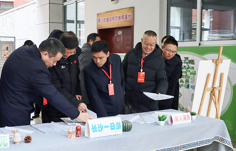 在蓮湖小學(xué),視察組一行參觀了竣工后投入使用的蓮湖小學(xué)校園基礎(chǔ)設(shè)施、學(xué)校足球場、校園文化展板、學(xué)生心愿墻和作品展示墻,詳細了解學(xué)校辦學(xué)理念、辦學(xué)特色和歷史榮譽。據(jù)了解,蓮湖小學(xué)擴建項目為雨花區(qū)政府打造的光伏發(fā)電減輕能耗項目,將太陽能盡數(shù)“捕捉”轉(zhuǎn)化為電能,用于學(xué)校公共照明。同時,在學(xué)校地下車庫,安裝新能源汽車智能充電樁,在校區(qū)內(nèi)埋地安裝雨水收集器,可循環(huán)利用供學(xué)校進行綠化養(yǎng)護噴灌及道路清洗,全面貫徹綠色節(jié)能低碳減排建設(shè)理念。