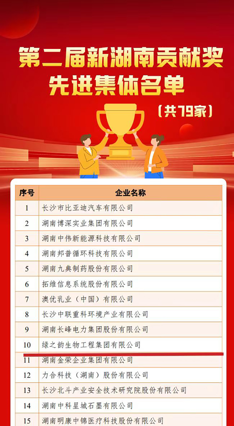 此次發(fā)布會,綠之韻集團憑借在企業(yè)經(jīng)營發(fā)展、行業(yè)創(chuàng)新引領、地方稅收貢獻、社會責任擔當?shù)确矫娴呢暙I,被授予“第二屆新湖南貢獻獎先進集體”榮譽稱號。勞嘉總裁表示,非常榮幸獲此殊榮,綠之韻集團作為在湖湘沃土上成長起來的本土民營企業(yè),創(chuàng)立之初就勇?lián)鷼v史使命,積極投身新湖南建設當中,把企業(yè)發(fā)展同國家、民族命運相連接,把企業(yè)實際和湖南發(fā)展優(yōu)勢相結合,積極推進“大品牌、大健康、大金融”戰(zhàn)略,堅持“以產(chǎn)品為導向”,努力在生物醫(yī)藥、大健康、金融等各個領域深耕細作,不斷提升企業(yè)的綜合競爭力、抗風險能力和履行社會責任能力。未來,集團也將認真落實習近平總書記為湖南擘畫的“三高四新”美好藍圖,繼續(xù)秉持“建百年企業(yè) 創(chuàng)世界名牌”的企業(yè)精神,進一步發(fā)揮自身優(yōu)勢,持續(xù)專注大健康領域,深耕產(chǎn)業(yè)鏈,深入踐行新發(fā)展理念,推動企業(yè)高質量發(fā)展再上新臺階,為湖南穩(wěn)步高質量發(fā)展做出更深遠的貢獻。