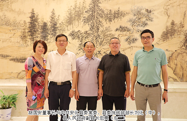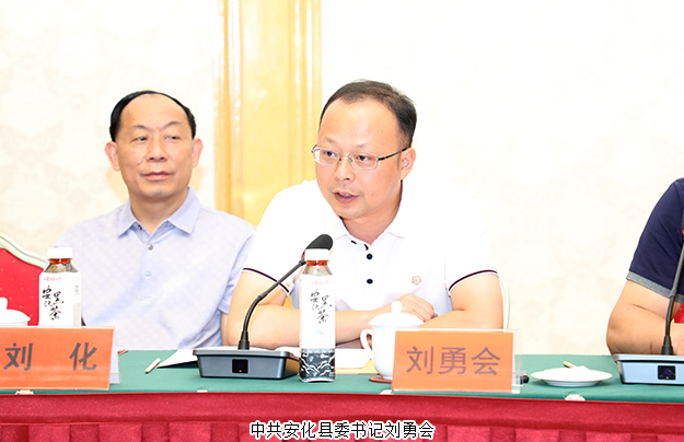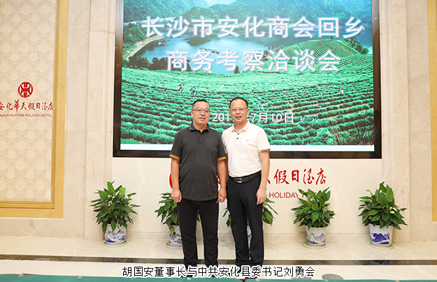 為進(jìn)一步探索經(jīng)濟(jì)轉(zhuǎn)型期和新的形勢(shì)下促進(jìn)家鄉(xiāng)經(jīng)濟(jì)高質(zhì)量發(fā)展的新方法、新形式,助推家鄉(xiāng)精準(zhǔn)扶貧產(chǎn)業(yè)脫貧,2019年7月9—10日,由長(zhǎng)沙市安化商會(huì)安化籍知名企業(yè)家組成的考察團(tuán),回鄉(xiāng)商務(wù)考察洽談。中共安化縣委書記劉勇會(huì),縣委副書記王新宇,縣委常委、縣委統(tǒng)戰(zhàn)部部長(zhǎng)劉化,縣人大常委會(huì)副主任王良才,縣人民政府副縣長(zhǎng)伍亮以及縣商務(wù)局、工商聯(lián)等部門負(fù)責(zé)人;湖南省工商聯(lián)(總商會(huì))副會(huì)長(zhǎng)、長(zhǎng)沙市安化商會(huì)會(huì)長(zhǎng)、安化縣工商聯(lián)(總商會(huì))名譽(yù)會(huì)長(zhǎng)、綠之韻集團(tuán)董事長(zhǎng)胡國(guó)安攜20余位安化籍企業(yè)家參加本次考察活動(dòng)。
