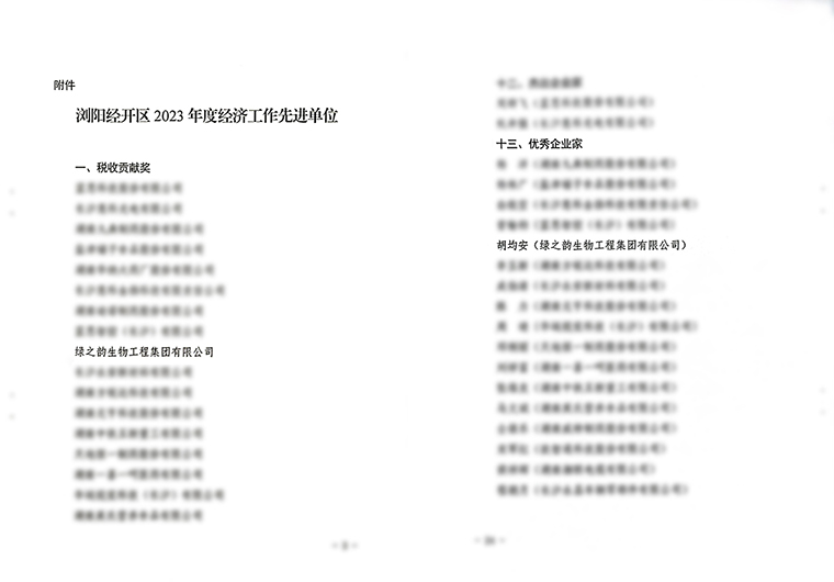 瀏陽(yáng)市經(jīng)開區(qū)黨工委副書記、管委會(huì)主任喻輝對(duì)2023年度經(jīng)濟(jì)工作考核結(jié)果進(jìn)行通報(bào)。大會(huì)對(duì)2023年度園區(qū)企業(yè)、企業(yè)家和各服務(wù)部門奮勇拼搏、真抓實(shí)干、勇立潮頭,涌現(xiàn)的一批先進(jìn)企業(yè)及個(gè)人予以集中表彰。綠之韻集團(tuán)憑借在企業(yè)經(jīng)營(yíng)發(fā)展、行業(yè)創(chuàng)新引領(lǐng)、地方稅收貢獻(xiàn)、社會(huì)責(zé)任擔(dān)當(dāng)?shù)确矫嫒〉玫耐怀龀煽?jī),被國(guó)家級(jí)瀏陽(yáng)經(jīng)開區(qū)管委會(huì)授予2023年度“稅收貢獻(xiàn)獎(jiǎng)”“創(chuàng)新發(fā)展獎(jiǎng)”“綠色發(fā)展獎(jiǎng)”多項(xiàng)榮譽(yù)表彰,常務(wù)副總裁胡均安被授予“優(yōu)秀企業(yè)家”榮譽(yù)稱號(hào)。