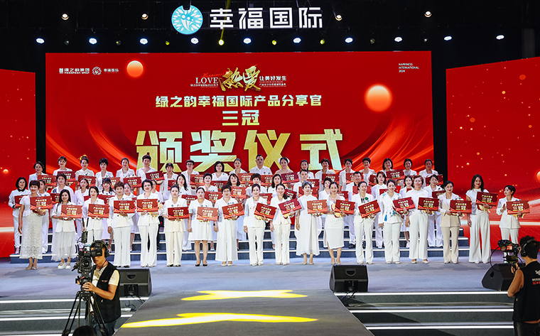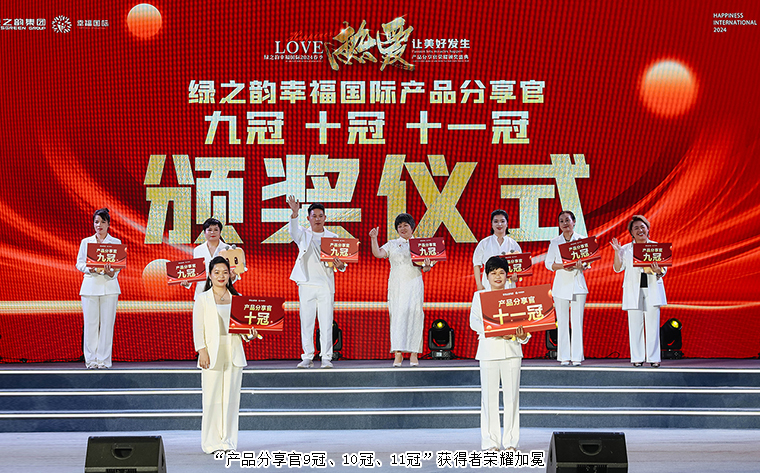 2024年4月23日,熱愛,讓美好發(fā)生——綠之韻幸福國際2024春季產(chǎn)品分享官榮耀頒獎(jiǎng)盛典成功舉行。綠之韻集團(tuán)副總裁、幸福導(dǎo)師夏運(yùn)良及運(yùn)營團(tuán)隊(duì)與來自全國各地的1500余名綠之韻家人匯聚一堂,共襄盛舉。大會(huì)全程通過PC、移動(dòng)端在線互動(dòng)視頻直播,線上近30000人次共同收看和分享了大會(huì)盛況。