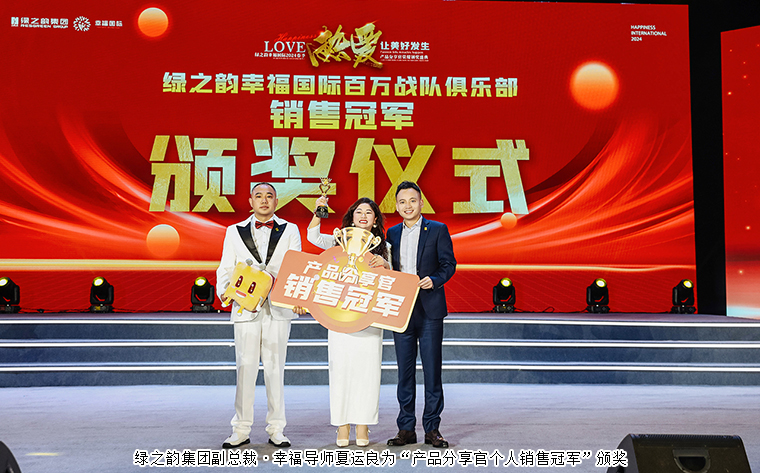 他們,用奮斗到最后一秒的堅(jiān)持,全力以赴的拼搏,毫無保留的交付,上下一心的團(tuán)結(jié),不甘平庸的進(jìn)取,將每一份熱愛化作滋養(yǎng)生命的能量。他們,始終火力全開馳騁在市場一線,永遠(yuǎn)奔跑在沖刺目標(biāo)的道路上;他們,從未膽怯、迎難而上,帶領(lǐng)自己的團(tuán)隊(duì)勇攀一個(gè)又一個(gè)高峰。綠之韻集團(tuán)副總裁、幸福導(dǎo)師夏運(yùn)良為“產(chǎn)品分享官個(gè)人銷售冠軍”頒獎(jiǎng)。幸福代言人黃永志、肖純芬伉儷分享獲獎(jiǎng)感言。綠之韻國際商學(xué)院常務(wù)副院長、綠之韻集團(tuán)運(yùn)營部執(zhí)行總經(jīng)理陳敏,綠之韻健康專家委員會(huì)專家委員、綠之韻幸福國際市場商學(xué)院院長侯俊霞為“2024年一季度百萬戰(zhàn)隊(duì)”頒獎(jiǎng)。綠之韻國際商學(xué)院執(zhí)行院長黎芋成為“2024年一季度百萬戰(zhàn)隊(duì)冠軍”頒獎(jiǎng)。